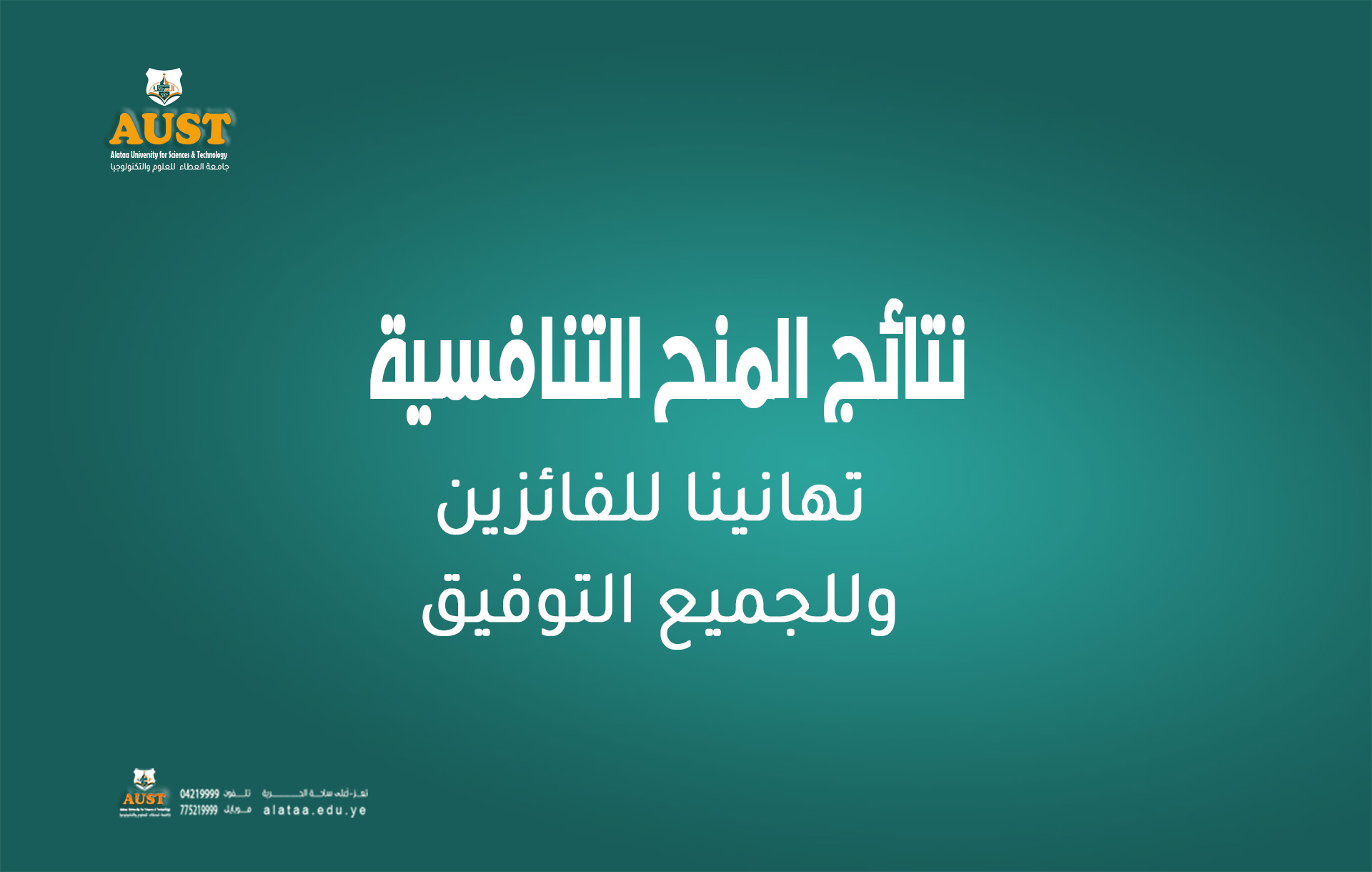 تعلن جامعة العطاء للعلوم والتكنولوجيا عن نتائج اختبارات المفاضلة للتنافس على المنح الدراسية الكاملة والجزئية التي تقدمها الجامعة للعام 2025-2026، في إطار خدمة المجتمع ودعم المتميزين ..