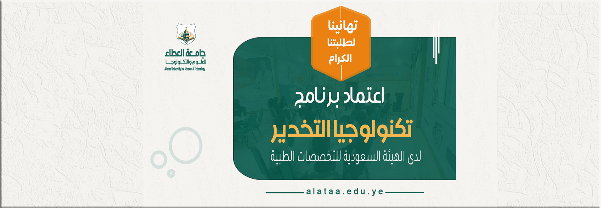 في خطوة تعكس التزام جامعة العطاء للعلوم والتكنولوجيا بالجودة والتطوير المستمر، تم اعتماد #قسم_تكنولوجيا_التخدير في الجامعة من قبل #الهيئة_السعودية_للتخصصات الطبية، ليكون بذلك خطوة إضافية نحو التميز والاحترافية في مجال التعليم الطبي.
