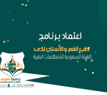 نبارك لأبنائنا الخريجين والطلبة في برنامج #طب_الفم_والاسنان اعتماده في #الهيئة_السعودية_للتخصصات_الطبية، وقبول مخرجات البرنامج للعمل في #المملكة_العربية_السعودية، كما سيتم بموجب الاعتماد ... اقرأ أكثر
