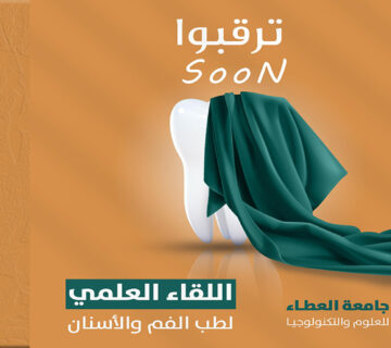 ترقبواDr Qahtanيناير 17, 2026إعلان ترقّبوا اليوم العلمي (الثاني) لطب الفم والأسنان ، الذي ينظّمه قسم طب الفم والأسنان، برعاية جامعة العطاء للعلوم والتكنولوجيا، ... اقرأ أكثر
